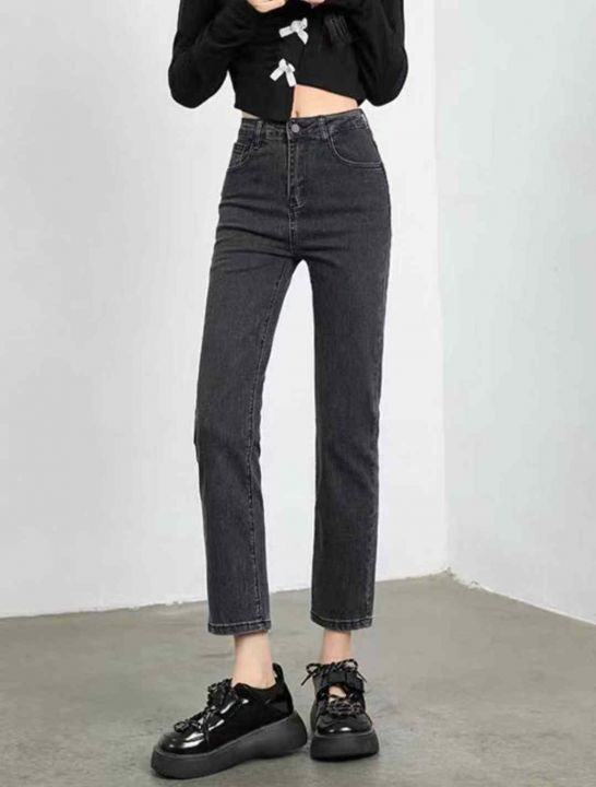 款号:K866#时尚高腰开叉烟管设计感直筒牛仔裤290件,码数:XS-3XL,有弹力...