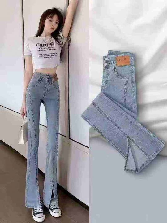 清8.8开叉高弹力牛仔裤女2025年新款高腰显瘦设计感微喇叭裤,数量209件,码...