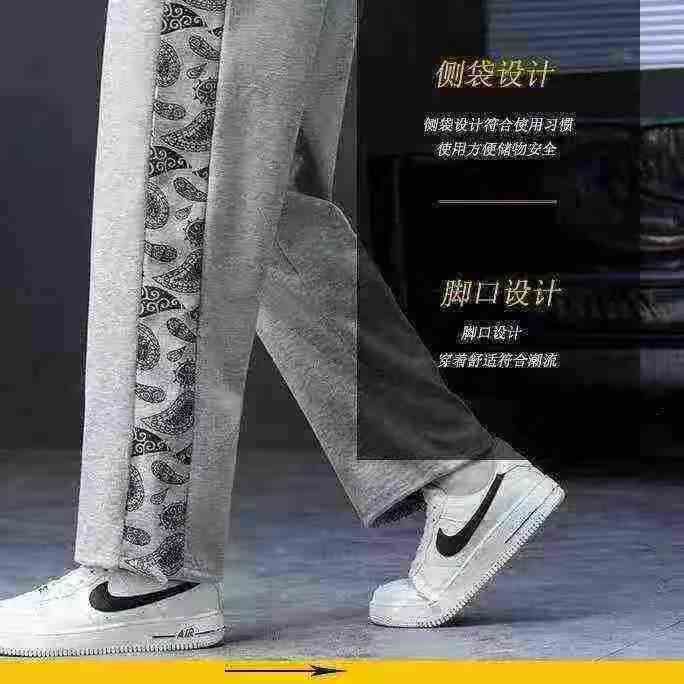 男士潮流拼色百搭阔腿休闲裤,脚口抽绳设计,可束脚可阔腿,鱼鳞布面料加绒...