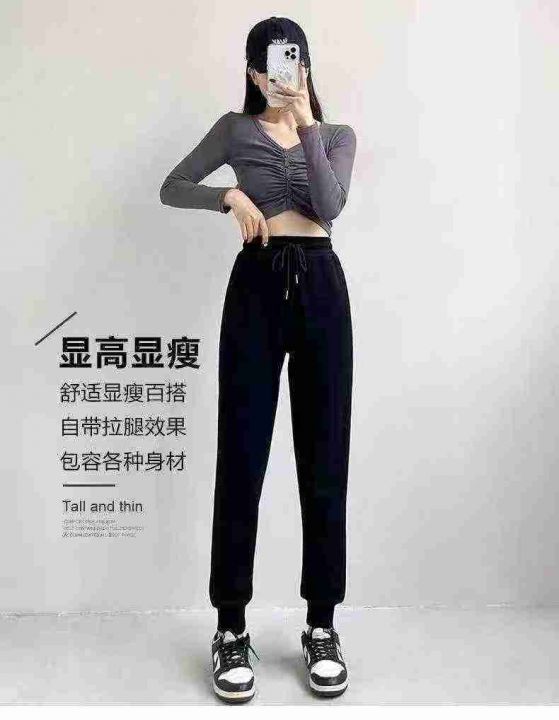 韩版高腰垂感宽松显瘦百搭休闲阔腿束脚运动裤 面料柔软舒适有弹力 独立包装...