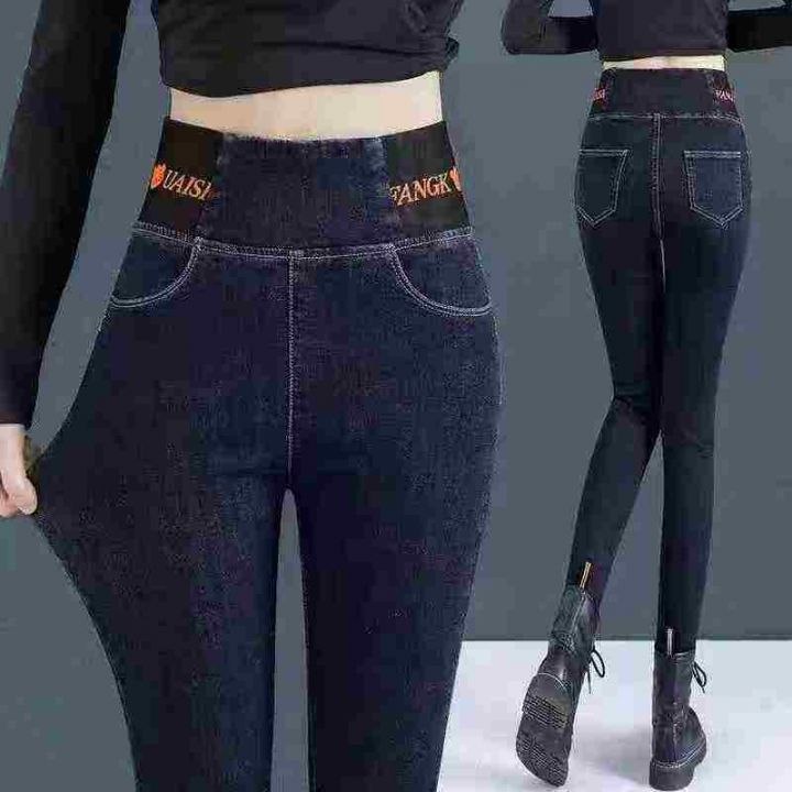高弹力加绒牛仔100条全清13.8元松紧腰牛仔裤女高腰弹力小脚裤修身显瘦舒适...