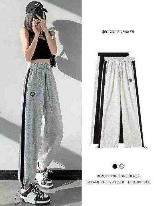 韩版高腰垂感宽松显瘦百搭休闲阔腿束脚运动裤 面料柔软舒适有弹力 独立包装...