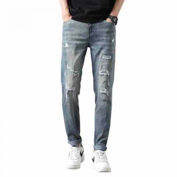 秋季新款男士高弹力复古蓝破洞设计款牛仔裤,独立包装带,码数28-30-32-34-...