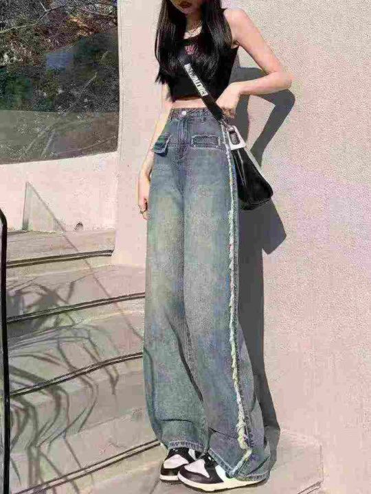 高腰垂感阔腿牛仔裤,辣妹牛仔阔腿裤新款复古显瘦宽松直筒牛仔拖地裤,正规...