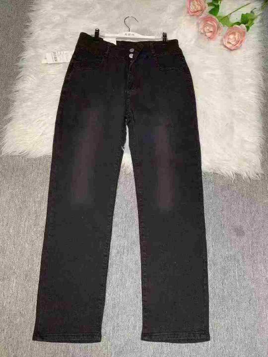 黑色弹力高腰直筒牛仔裤女大码胖mm梨形身材宽松显瘦阔腿裤子600件,独立包...