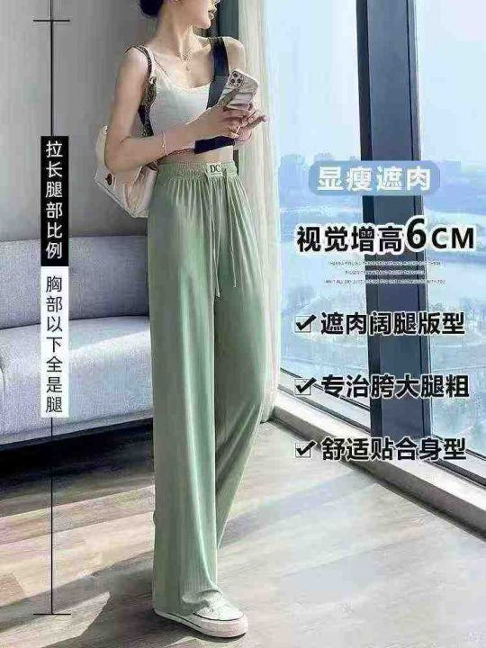 418件高腰垂感系绳宽松直筒冰丝阔腿裤,面料柔顺有质感,高弹力,品质非常...