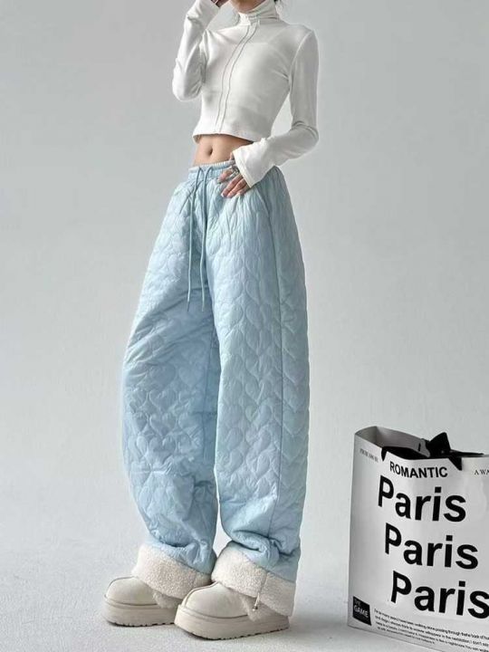 防寒休闲羊羔保暖裤男女冬季潮宽松葫芦纹防水直筒裤加绒滑雪棉裤,数量452...