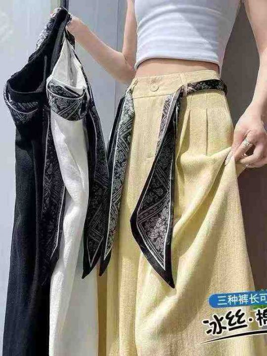 阔腿裤女夏薄款系带高腰显瘦宽松垂感休闲直筒拖地裤,整款2色,白色为主,S...