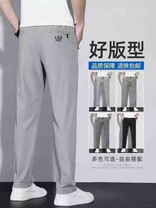 直筒长裤新款秋夏季薄款冰丝裤子男士大码休闲裤透气弹力运动裤男,整款2色...