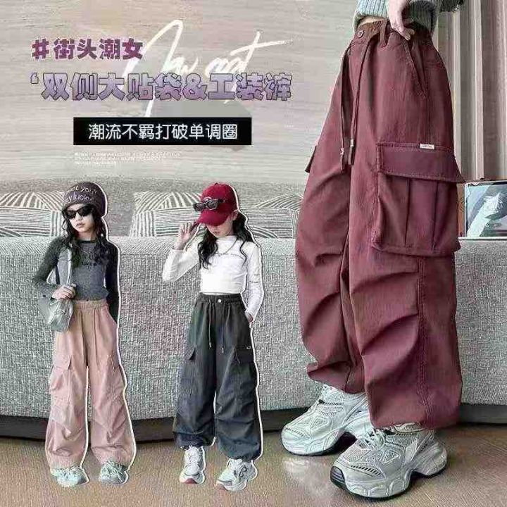 女童工装裤春秋款洋气女大童潮酷宽松阔腿裤儿童秋装裤子,整款3色,斜纹棉...