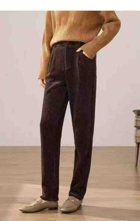秋冬新款品牌剪标高品质雪尼尔高腰宽松哈伦萝卜条绒老爹裤,独立包装,码数...