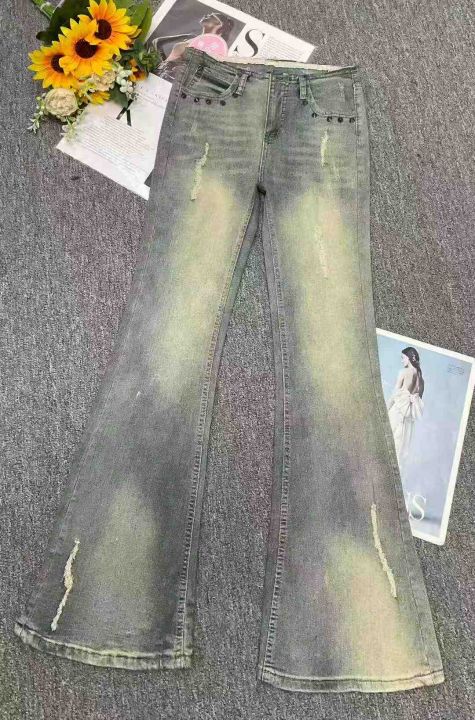 秋季新品弹力美式复古辣妹设计感显瘦微喇叭牛仔裤,独立包装带吊牌,码数M-...