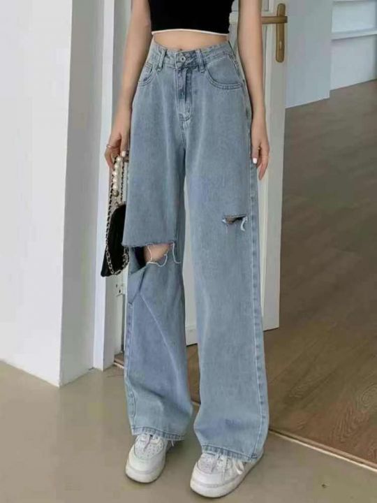 破洞牛仔老爹裤☕️140条全清9.9元,码数S到3xl,独立包装、夏季破洞牛仔裤...
