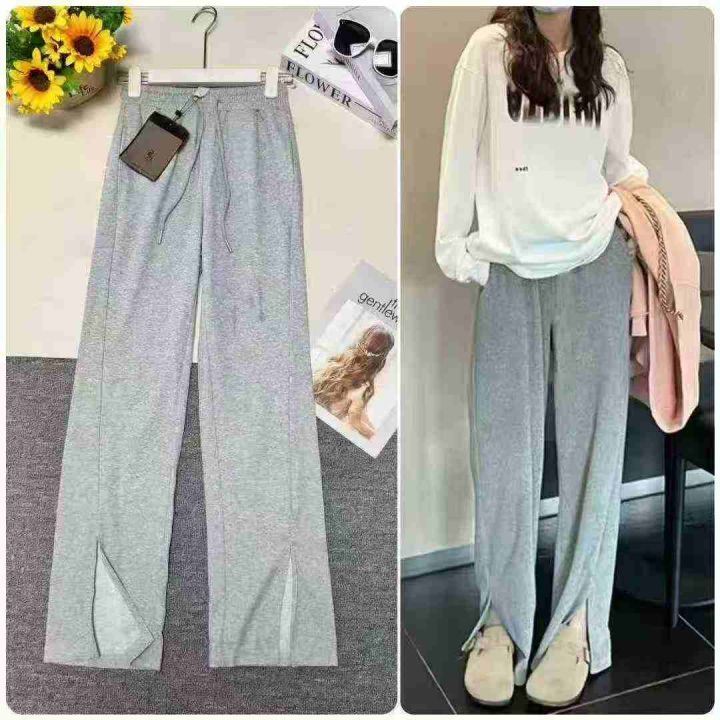 523条,港风休闲裤女2025夏季新款宽松阔腿裤薄款抽绳束脚拼接学生运动裤,...