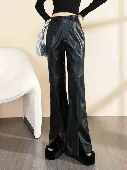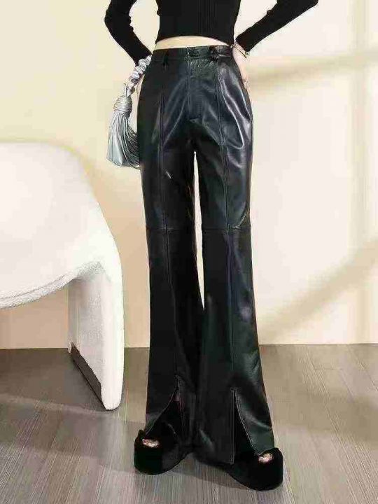 全清:4.8黑色PU辣妹修身小脚喇叭高腰显瘦百搭加绒皮裤,品质好,小整杂,...
