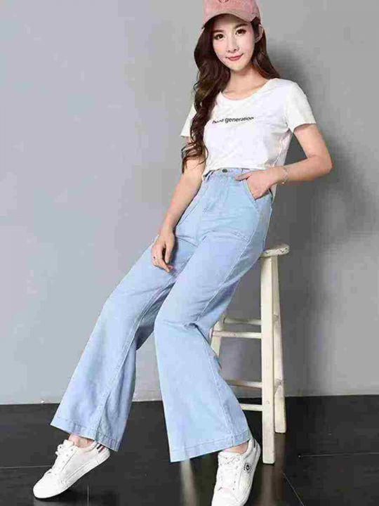 #Jeans wholesale 弯刀牛仔裤女士秋冬半松紧高腰长阔腿裤 宽松镰刀裤,单款...