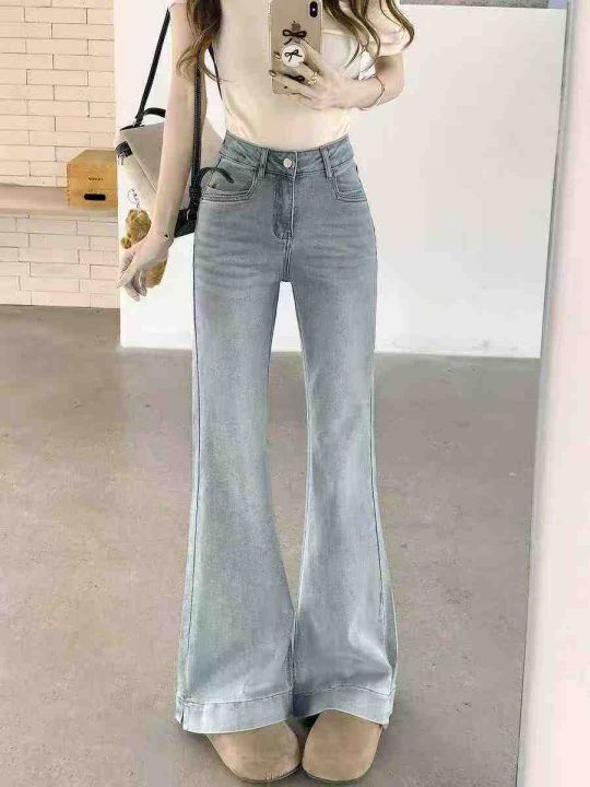 秋季新品弹力洗水棉辣妹风复古水蓝色修身显瘦百搭喇叭牛仔长裤,独立包装带...