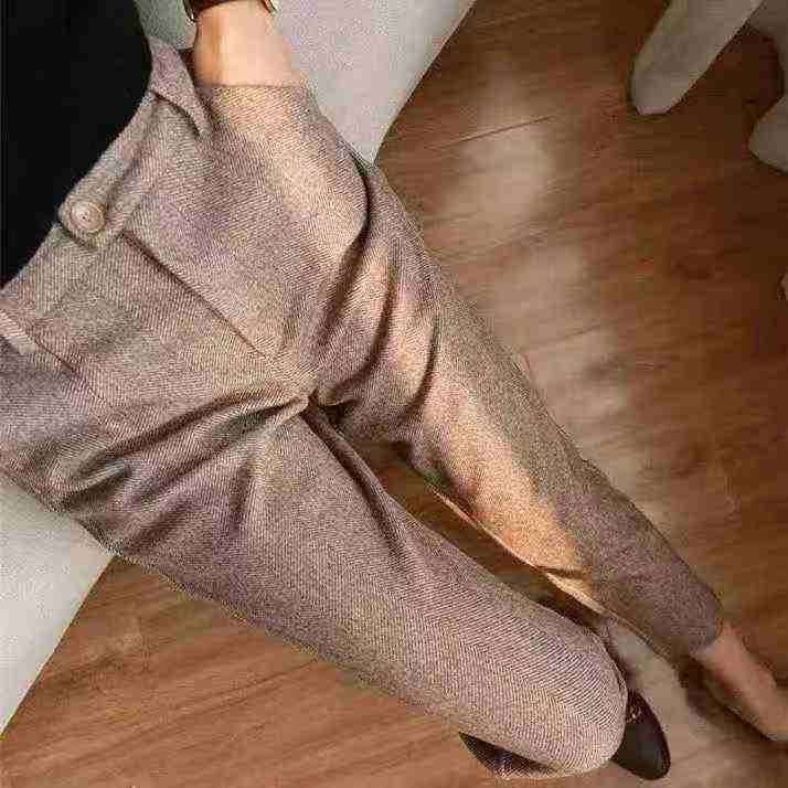 女裤2025秋冬棕咖色深灰色人字纹毛呢西裤女九分烟管裤,独立包装,图色图款...