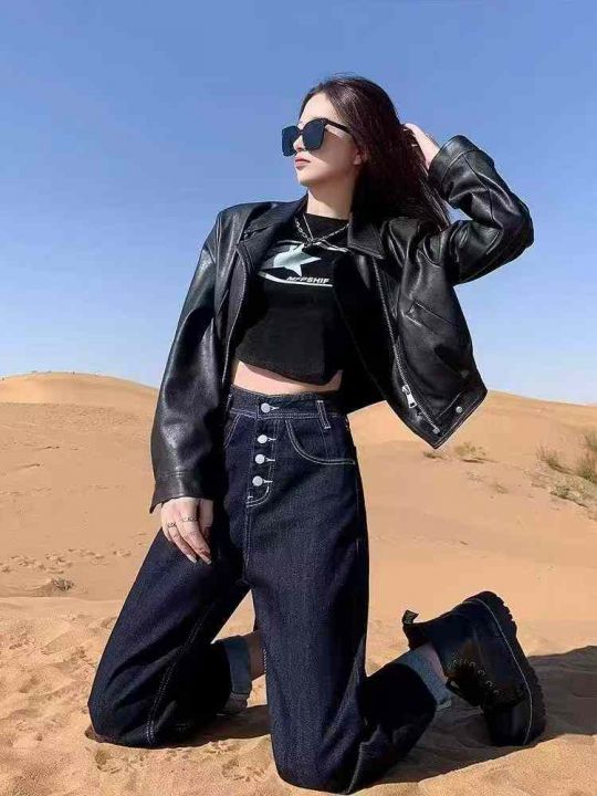 秋季新品洗水棉网红爆款高腰宽松牛仔老爹哈伦裤,独立包装带腰卡,码数XS-X...