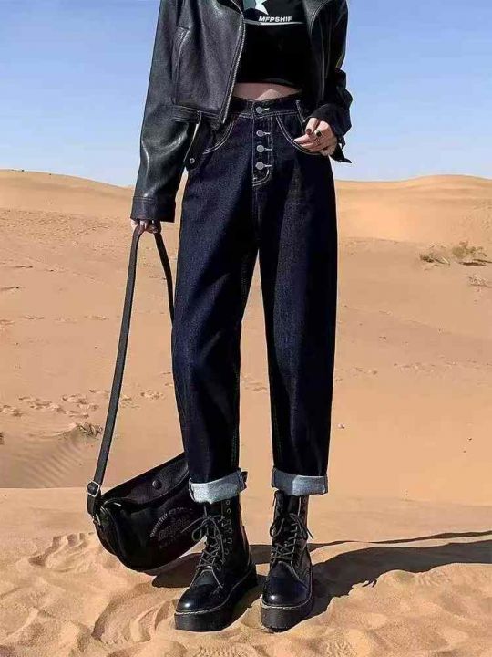 秋季新品洗水棉网红爆款高腰宽松牛仔老爹哈伦裤,独立包装带腰卡,码数XS-X...