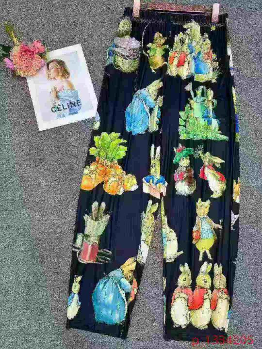 欧美外贸春夏宽松卡通兔子印花宽松阔腿裤可外穿宽松口袋长裤,只有黑色,独...