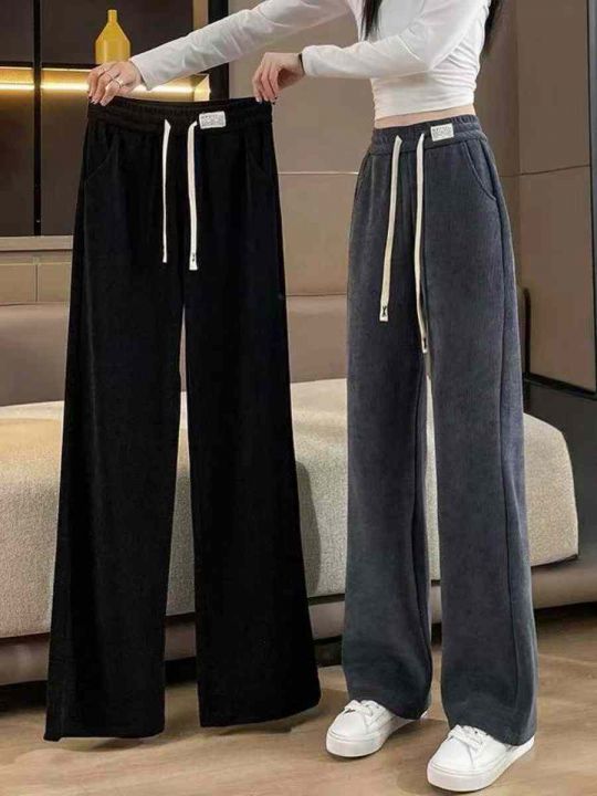 1376条\'雪尼尔阔腿裤子女高腰垂感长裤直筒休闲宽松,独立包装带吊牌,码数...