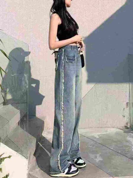 全清14.5设计感毛边牛仔裤女春秋新款,高腰显瘦百搭阔腿直筒拖地裤,独立包...