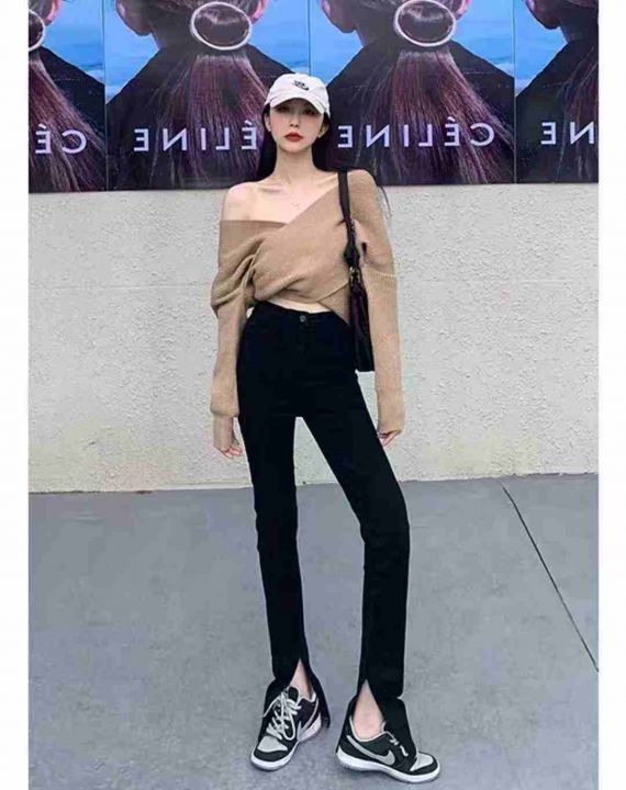 YKK拉链 高弹力牛仔裤 174件纯黑色高腰提档窄版直筒秋款牛仔裤女款秋季秋款...