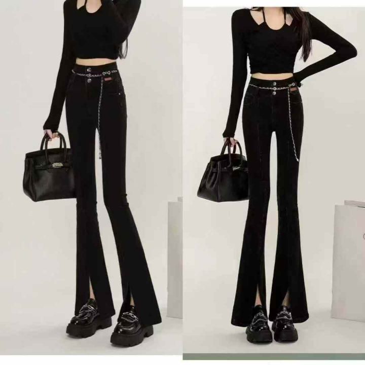 高腰加绒加厚微喇叭女土弹力牛仔裤,整款2个颜色,独立包装,S-XL码,数量2...