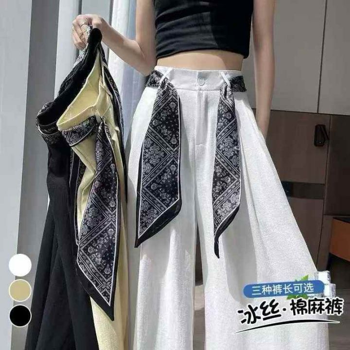 阔腿裤女夏薄款系带高腰显瘦宽松垂感休闲直筒拖地裤,整款2色,白色为主,S...