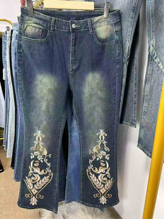 外贸款。高品质微喇叭弹力阔腿牛仔裤数量大约400条图片类似风格尺寸S-3XL码...