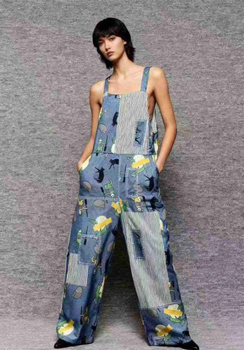 外贸时尚百搭减龄个性卡通印花背带裤,单款单色,有独立包装,数量350件左...