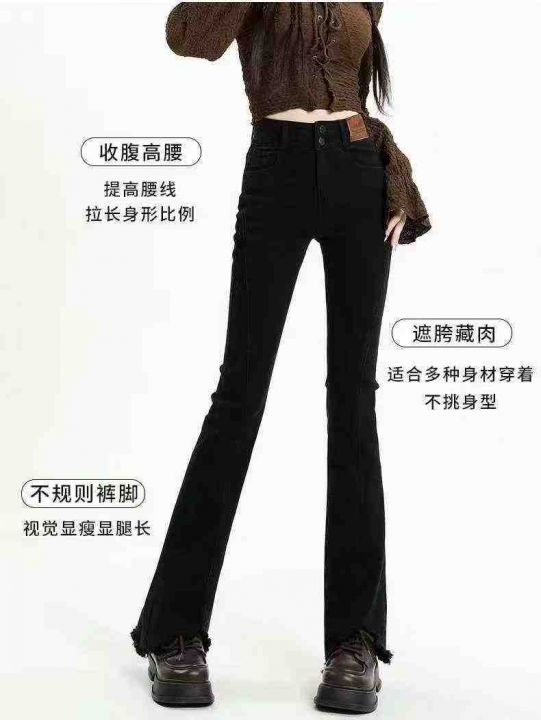 靓妹弹力微喇牛仔裤女新款高腰显瘦修身喇叭裤子流苏毛边黑色牛仔裤187件,...