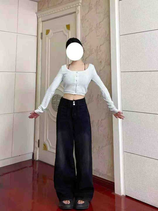 黑色高腰直筒牛仔裤女大码胖mm梨形身材宽松显瘦阔腿裤子600件,独立包装带...