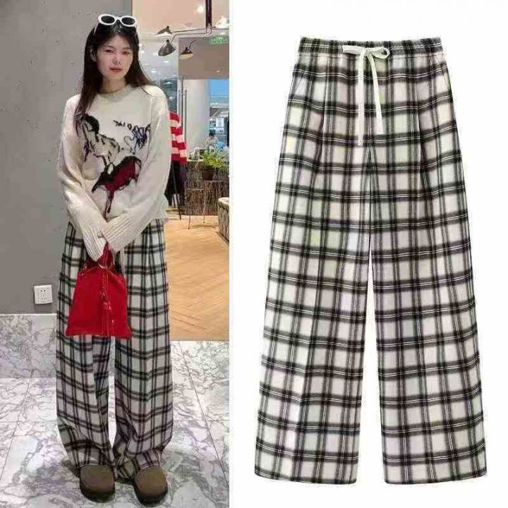 ☕️韩版港风chic百搭休闲高腰宽松格子休闲裤阔腿裤153条全清7.8元,独立包...
