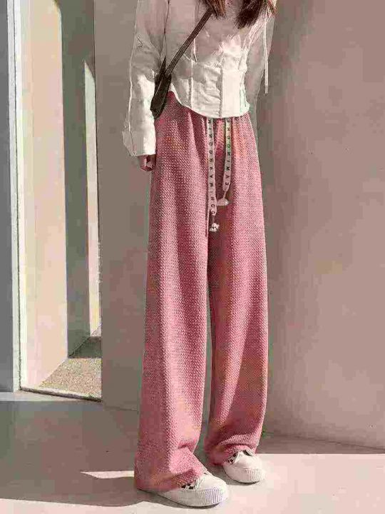 3360条泡芙裤女冰丝薄款宽松阔腿裤垂感棋盘格裤子,3个整款多个颜色,独立...