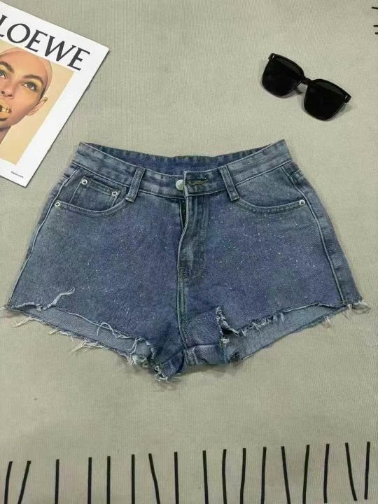 570条2025年夏季新款烫钻闪闪发光韩版高腰宽松阔腿裤热裤牛仔短裤,尺码S-X...