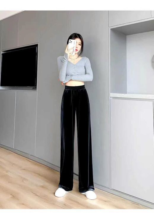 9.9清天猫仓回收1850条春秋款高品质金丝绒阔腿裤,均码可穿80-130斤,版型...