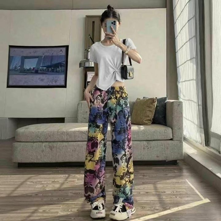 扎染哪吒图印阔腿裤1810件7.9,面料舒适高弹力,松紧腰,有口袋,码数4-6码...