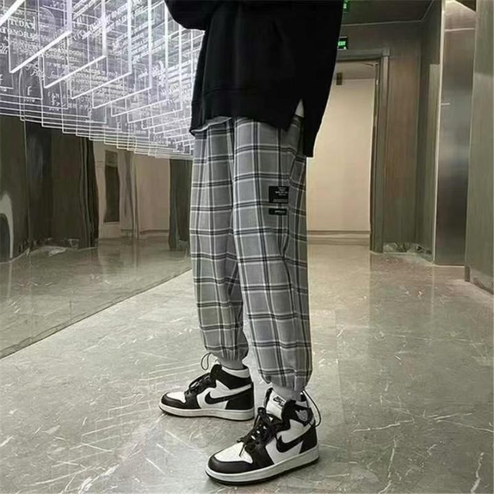 全清6.5元,裤子男宽松百搭潮流男士休闲裤春秋款男生格子运动裤夏季薄款长...