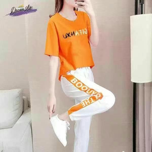 夏季时尚新款宽松显瘦侧插色印字母运动休闲裤,440件,1-4码,弹力面料,独...