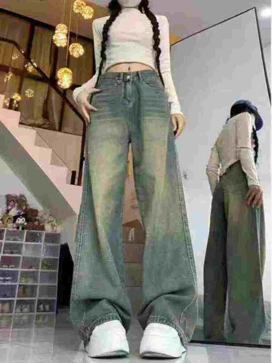 ☕️大码胖mm美式复古牛仔裤女夏季新款高个子做旧直筒高腰垂感窄版阔腿拖地...