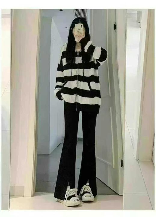5.8清电商仓回收170条时尚黑色开叉微喇叭裤女休闲裤,码数M-L,版型面料不...