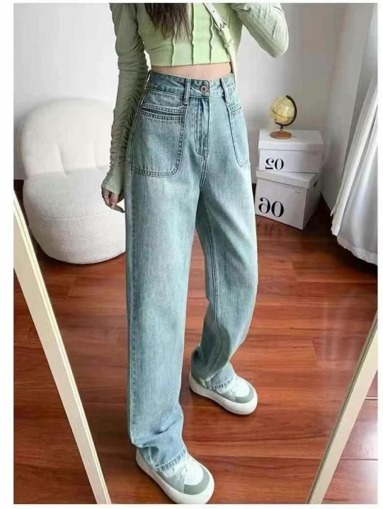 复古浅色高腰女士夏季薄款高腰显瘦阔腿牛仔裤,单款单色,独立包装,数量75...
