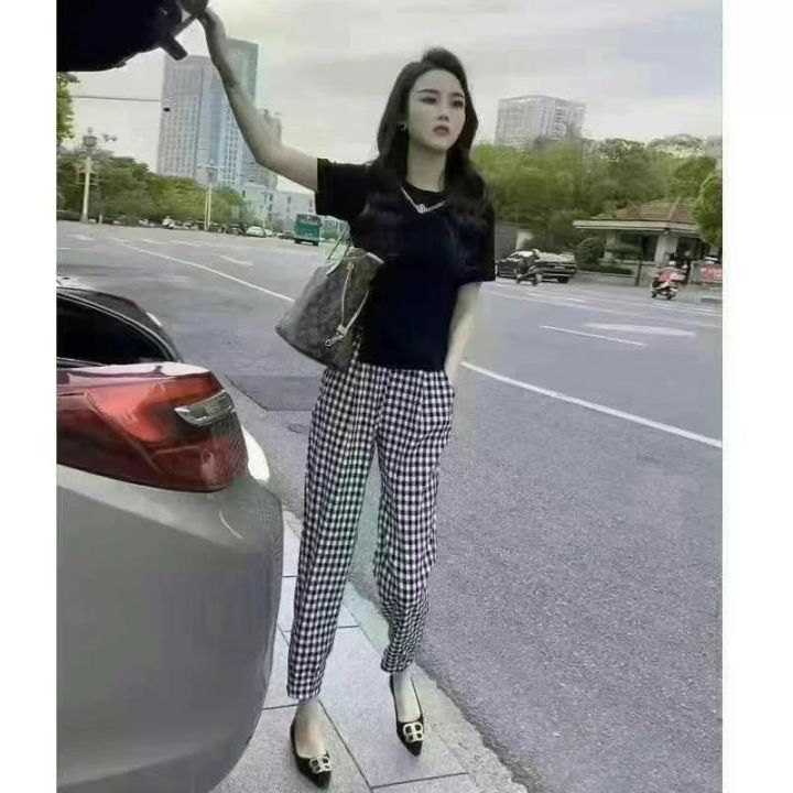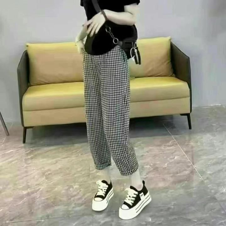 清货价9.8,数量425条宽松版棉麻休闲裤,黑白格子九分哈伦裤尺码m~3xl,m码...