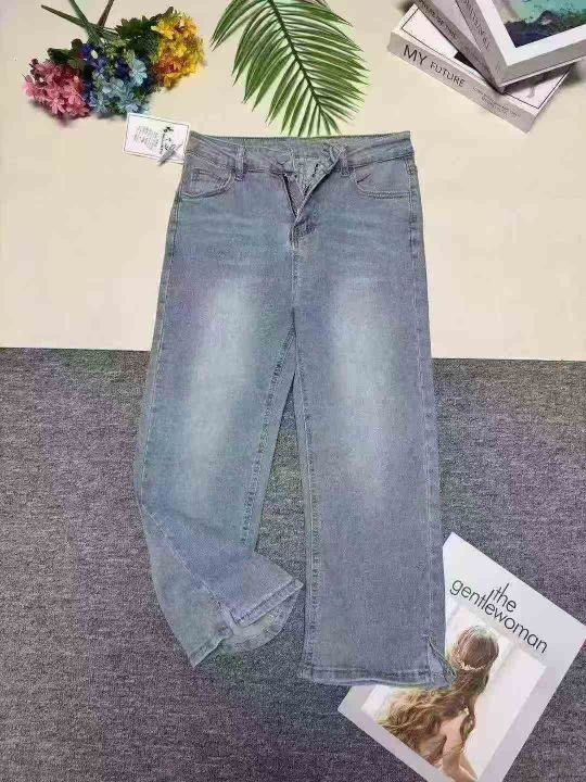 款号:K866#时尚高腰开叉烟管设计感直筒牛仔裤290件,码数:XS-3XL,有弹力...