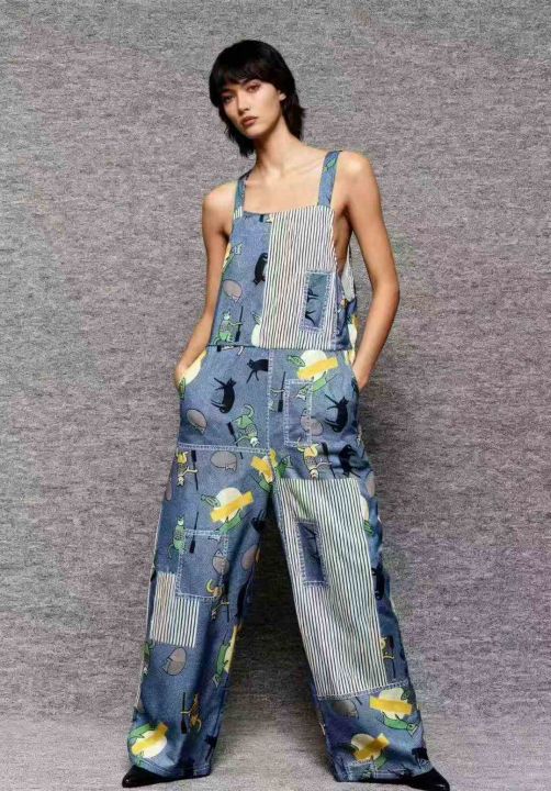 春秋时尚百搭减龄个性卡通印花背带裤,单款单色,有独立包装,数量350件左...