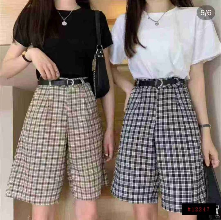 高腰抽绳设计,宽松阔腿格子五分裤版型,裤身有自然垂坠感,兼顾舒适度与休...