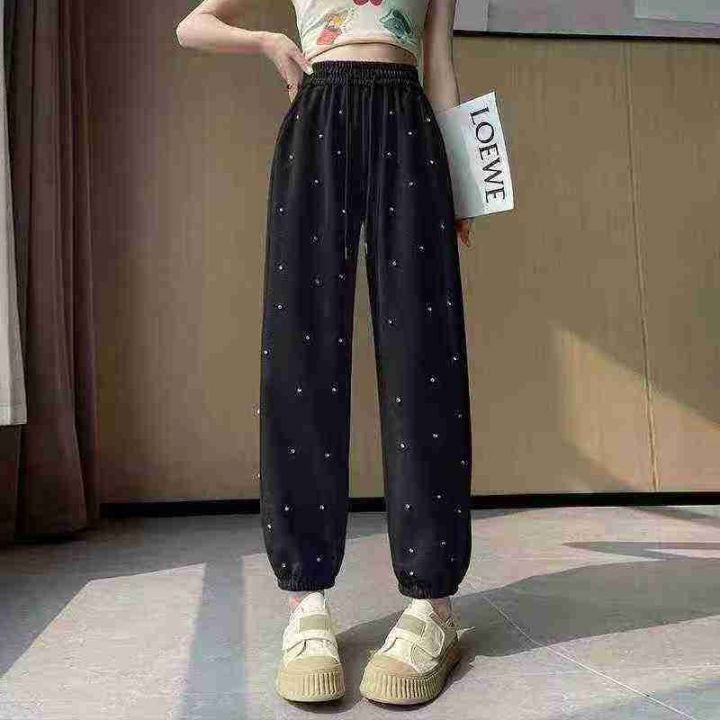 韩系重工镶钻满天星加绒束脚卫裤960件,秋冬清仓9.9,分货11.8,华棉面料柔...