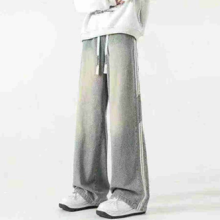 春秋新款美式高街水洗宽松撞色垂感直筒阔腿抽绳百搭牛仔裤,独立包装带吊牌...